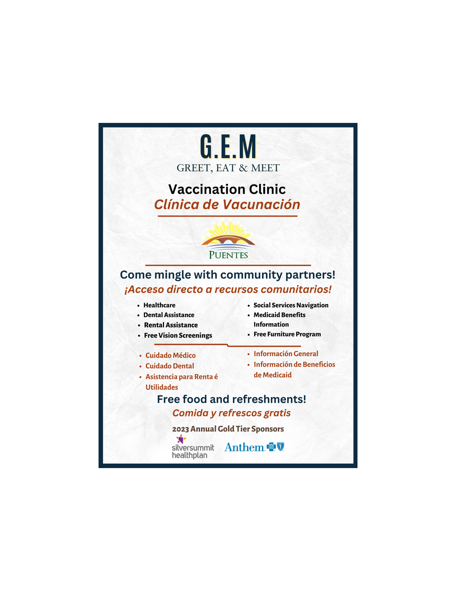 Join us for a GEM/Vaccination Clinic*SNHD hosted by Puentes/ Dr. Kopolow and Girisgen at Vegas Stronger.